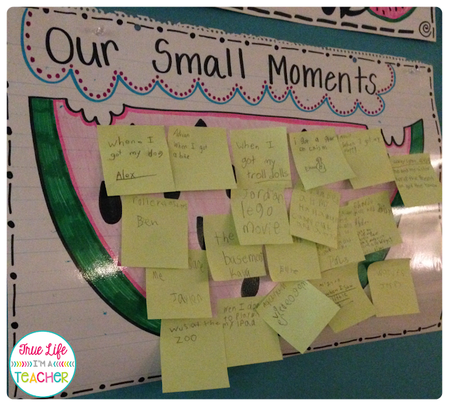 Take a look at our personal narrative and small moment/seed idea anchor chart!