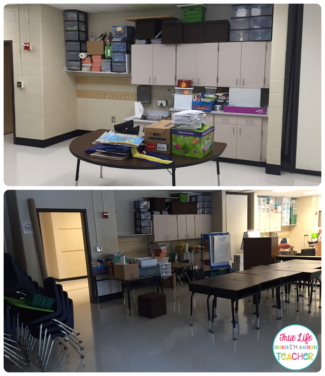 While I love looking at everyone’s classroom pictures, I know that those gorgeous classrooms didn’t start out that way. For anyone who’s either not a teacher, or is in college and hasn’t had to set up a classroom, I thought I’d share the good, the bad, and *gulp* the ugly. #thisjustgotreal