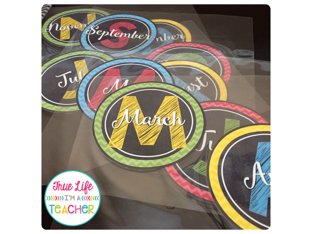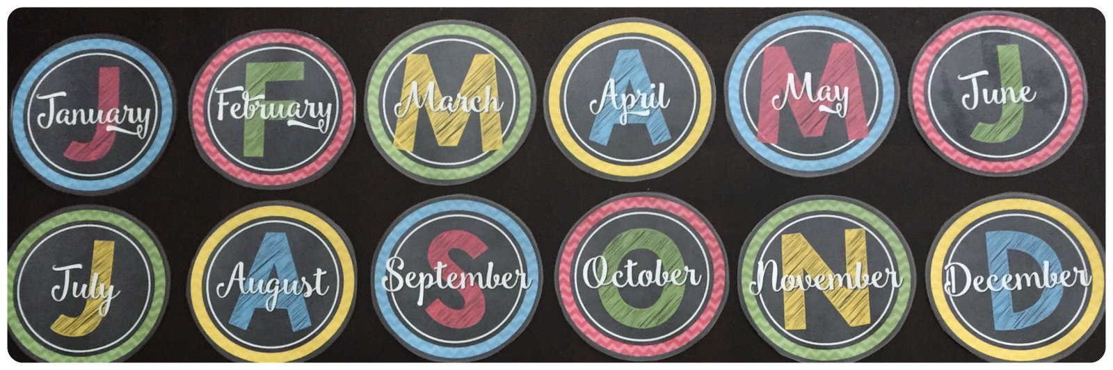 So what am I using instead of the cupcake printable I previously used? I made some coordinated labels on which each student’s name and the date of their birthday will be written. Easy cuttin’ friends!