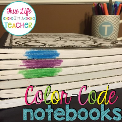 When we’re all finished color-coding our notebooks, I challenge students to a race! Can then take out a given notebook faster than they did before we color-coded?