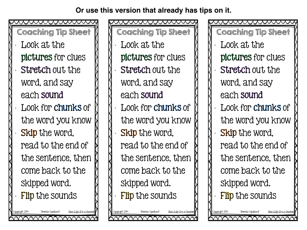 My plan is to print these on colorful card stock, laminate, and have each student keep one in his/her book box. Nothing fancy, just something concrete.