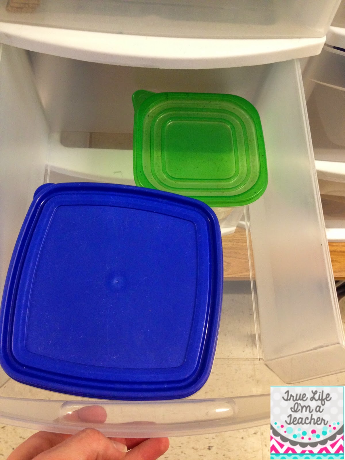 I use these bad boys to keep refill items, and items we don’t use as often. Actually, now that I think about it, some of these drawers work really well like the post-its, colored pencils, and glue sticks, but others were really just more of me shoving something in the drawer to get it “put away.” I’ll be revamping these some, because the base 10 blocks should actually be with the rest of the math manipulatives and base 10 blocks, and the dry eraser markers are something I need to have front and center all the time.