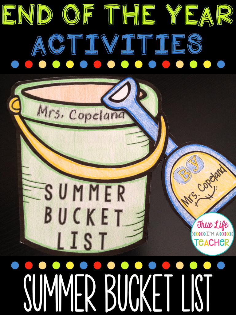I explained the idea of a bucket list to my kiddos (all the things you’d like to do in your life), and then explained that a summer bucket list would be things you want to do before going back to school. We brainstormed a whole lot of things together, and then my kiddos chose to either create a 5-item summer bucket list or a 10-item bucket list. I guided some of my reluctant writers to choose the 5-item bucket list, and some of my non-writers drew pictures instead of writing (hello, differentiation). Here’s the example I showed them: